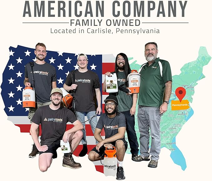 - Family-Owned American Company with USA Support: PetraTools is a USA-based company in Carlisle, Pennsylvania. All PetraTools products have a 100% satisfaction guarantee and excellent USA technical support. PetraTools continues to work hard to deliver top-quality sprayers and solutions to keep your home, lawn, and places of business clean, green, and safe.