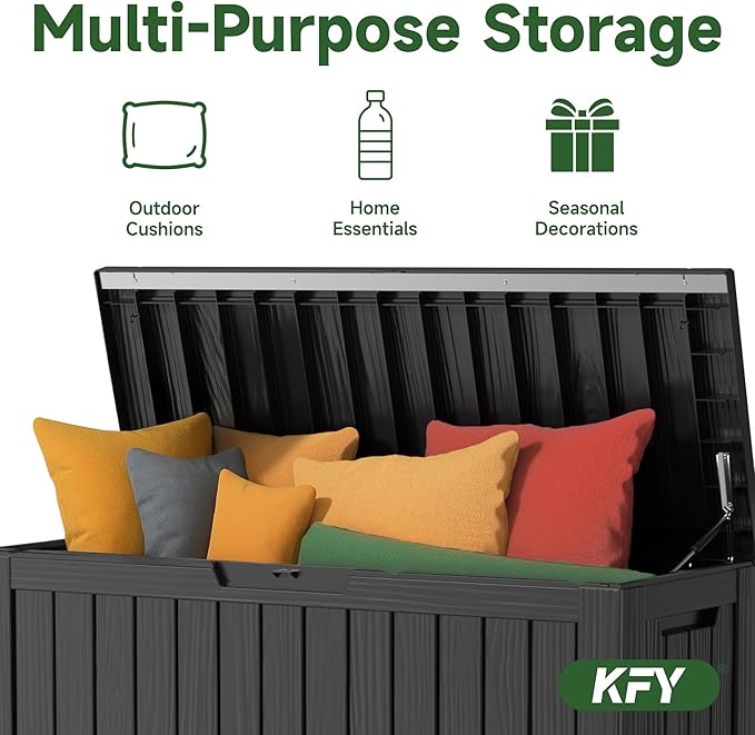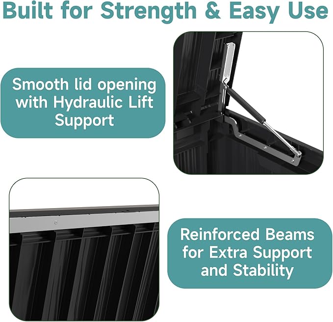 - EXTRA SEAT OR TABLE: Doubling as a seat or table, this deck box supports up to 400 lbs. Use it as a patio chair, a handy coffee table, or even a sturdy footrest, making it functional for both indoor and outdoor use.