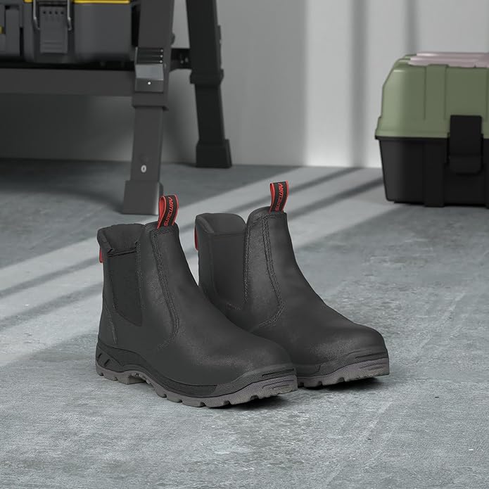 SUREWAY Men's Slip-On Work Boots for Men,Full Grain Leather,Anti-Static,Water/Slip Resistant,Fire Station Mechanic Industrial Construction Safety Boots/Shoes for Men