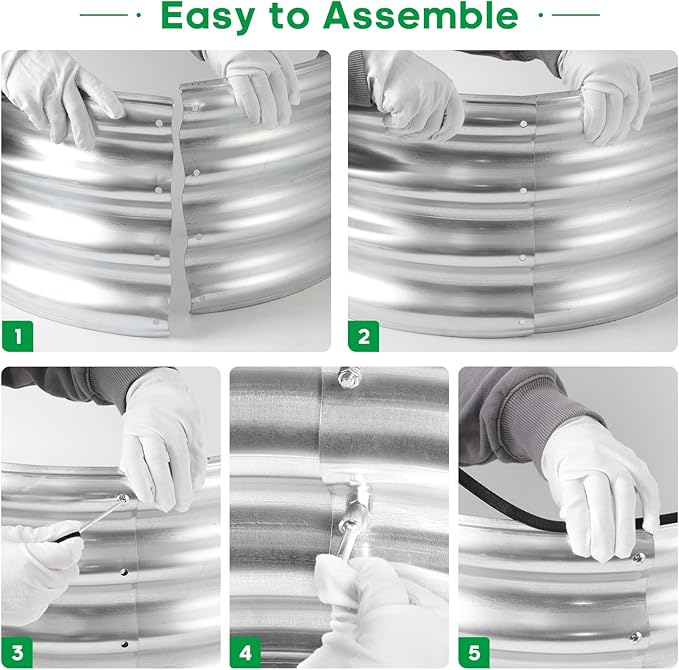- What You Get: we have included Galvanized raised garden bed kit with detailed assembly instructions, rubber edge strips, safety gloves , wrench tools and with galvanized nuts and bolts in the box .These essential tools elevate your overall planting and gardening adventure.