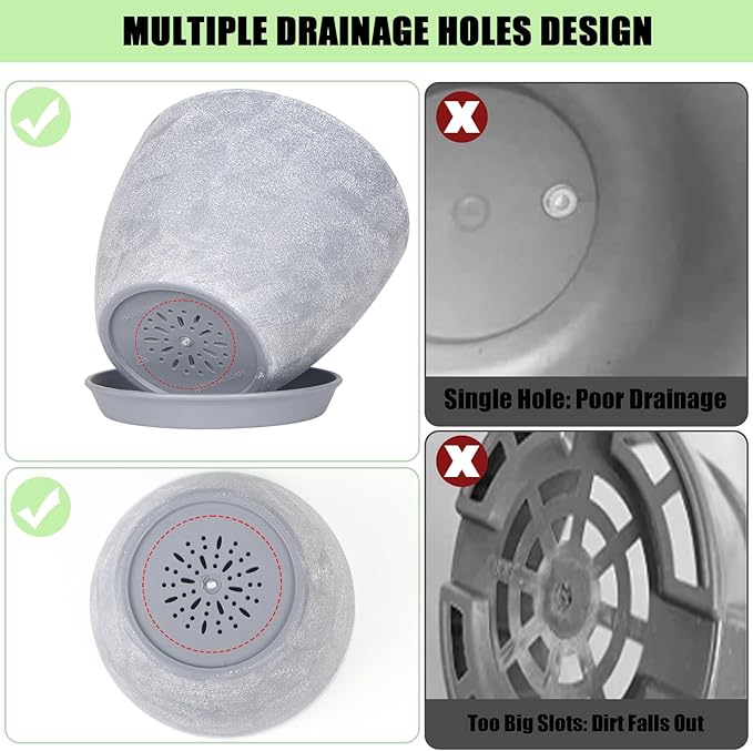 - Multiple Drainage Holes Design and Saucer: There are multiple drainage holes at the bottom of flower pots, which can drain excess water, allow the plant roots to circulate naturally.