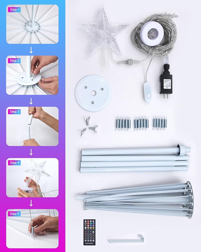 - Independent Topper Control: Use an App or remote to turn on or off the LED lighted star topper, or change it to warm white or synchronize with the current lighting effect of this color-changing Christmas tree