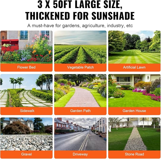 - Heavy Duty Weed Barrier Fabric: Crafted from 3.2OZ high-density, tear and corrosion resistant polypropylene, VEVOR 3 x 50FT woven weed barrier landscape fabric is the preferred choice for agriculture and industry. It ensures superior weed prevention and promotes soil health, keeping your landscaping remain weed-free for an extended period.