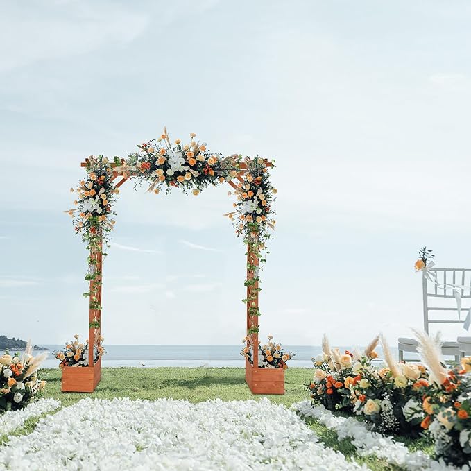 - 【Beautiful Design】 This elegant arch can be easily covered in beautiful vines, branches, colorful flowers, or delicate fabric, creating a surreal and sophisticated setting for the ceremony. With planter, you can local any place