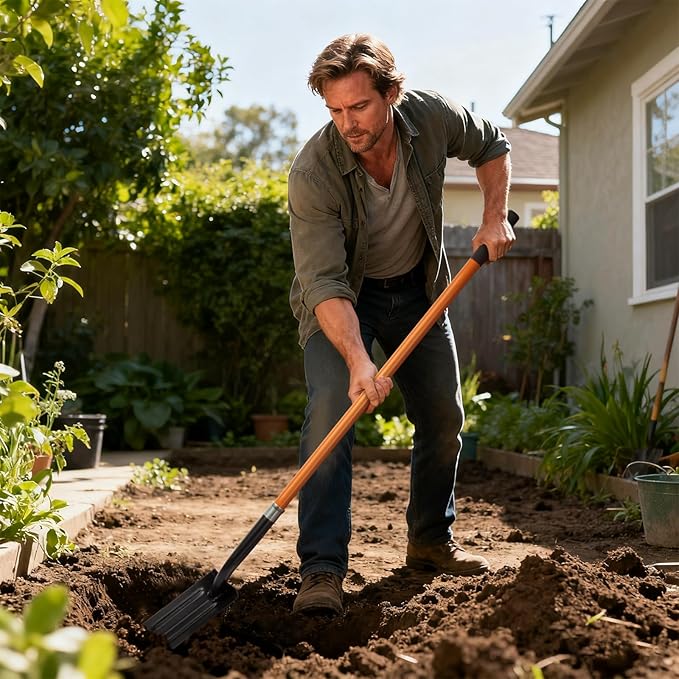 - Quality Material: The trenching shovel head is made of sturdy steel, strong and sharp with high quality. Heavy duty shovel has a fiberglass handle that is lightweight and sturdy, and the top of the handle is made of non-slip rubber. All of this helps you do a better job of gardening.