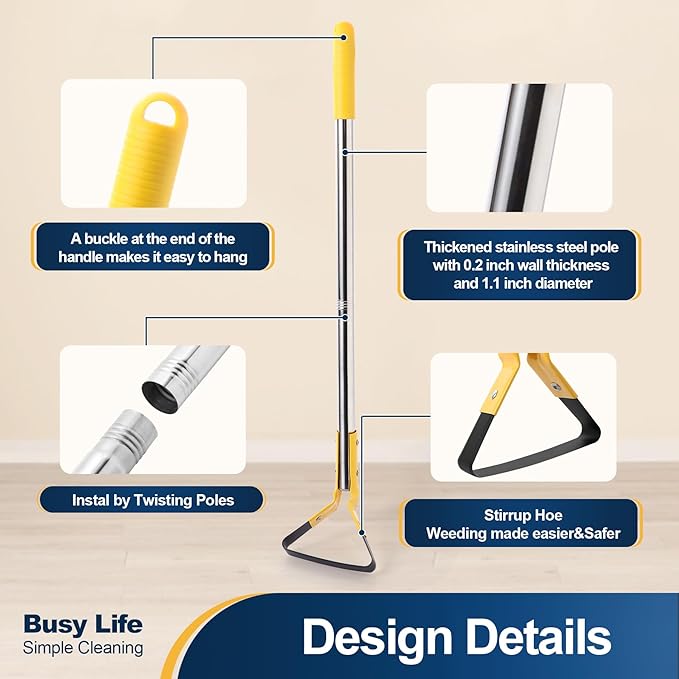 - Hoe Garden Tool Hoe 61” Long Handle Stainless Steel Hoe: Made from extra-thick 1.3" diameter premium steel, our garden hoes are designed to be sturdy and long-lasting. This good-quality material ensures durability and reliability, making these scuffle hoes a great value for years of use