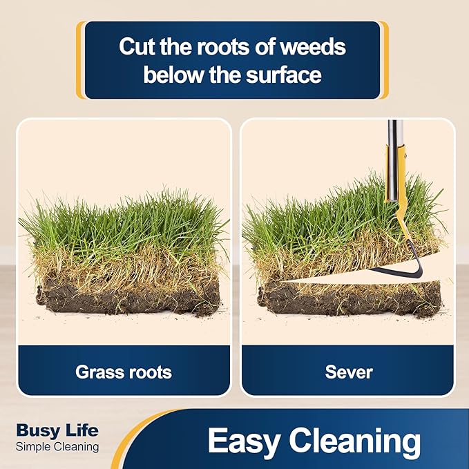 - Hoe Garden Tool Hoe 61” Long Handle Stainless Steel Hoe: Garden hoe adopt special hollow and dual sharpened blade design, scuffle hoe use with push pull motion which is easy and efficient to cut weed roots and remove thick weeds on sandy soil and wet soils, save half time than using your hands