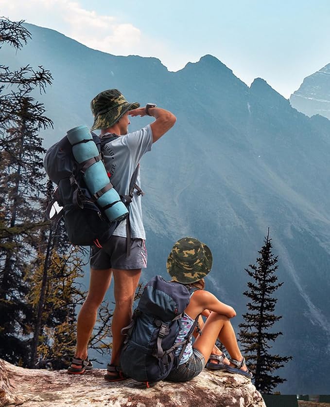 Men's Bucket Hat Camo Outdoor Sun Protection, Breathable Quick-Dry Fishing Gardening Hiking Hat ,UPF50+ Cotton Wide Brim