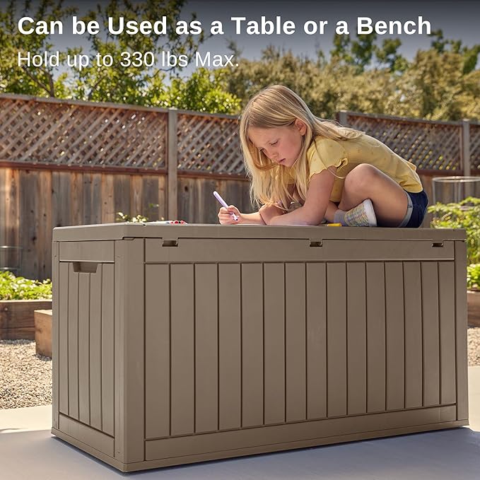 - ๐๐ ๐๐ฟ๐ฎ ๐ฆ๐ฒ๐ฎ๐ ๐ผ๐ฟ ๐ง๐ฎ๐ฏ๐น๐ฒ: EAST OAK patio storage box provides extra comfortable bench seating.This multipurpose outdoor storage container is suitable for those big backyard parties or a place to rest after working in your yard