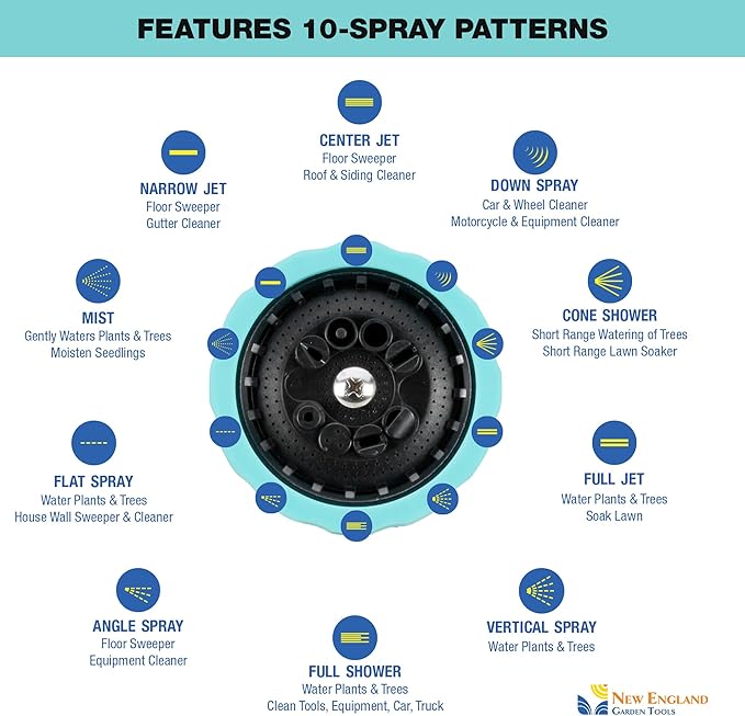 - Multi Pattern: 10 Spray Patterns for Convenience and Flexibility of Use