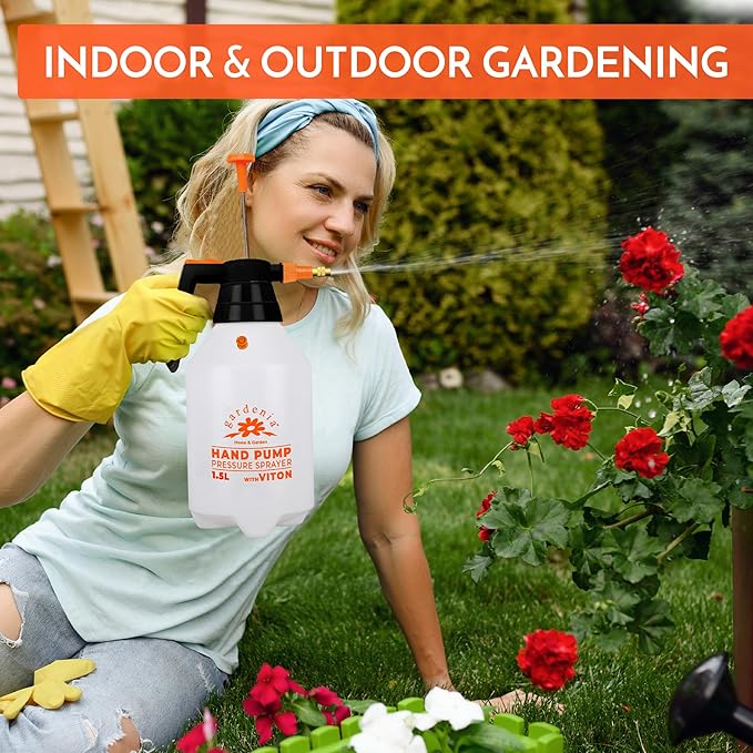 Handheld Pumping Sprayer Viton Seals Sprayers in Lawn and Garden, Spray Bottles for Cleaning Chemical Sprayer Continuous Spray Bottle for Plants 1.5L Plus (0.4 Gal/51oz)