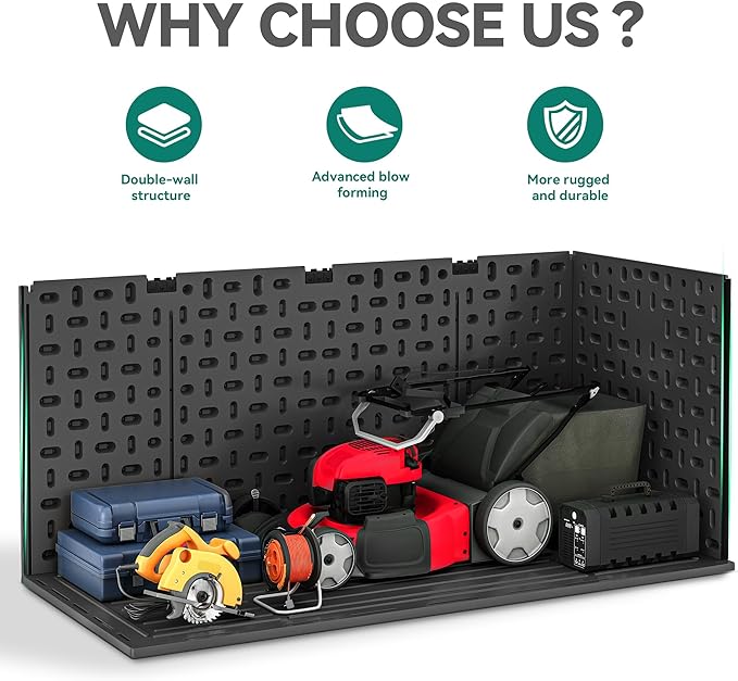 - Double-Layer Structure: Our all-weather resin deck box stands out with a double-layer structure and enhanced with internal reinforced steel beams, providing durability and resilience for outdoor use