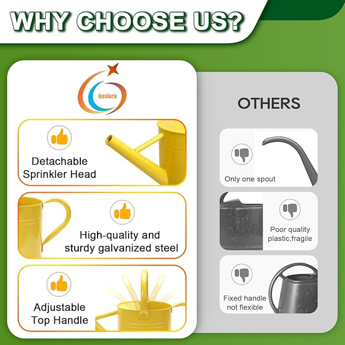 - Stylish and Functional: Whether you're a seasoned gardener or just starting out, this 1-gallon metal watering can is a stylish and functional addition to your gardening arsenal. Its elegant design and high-quality construction make it perfect for both indoor and outdoor use, simplifying the task of watering your plants.