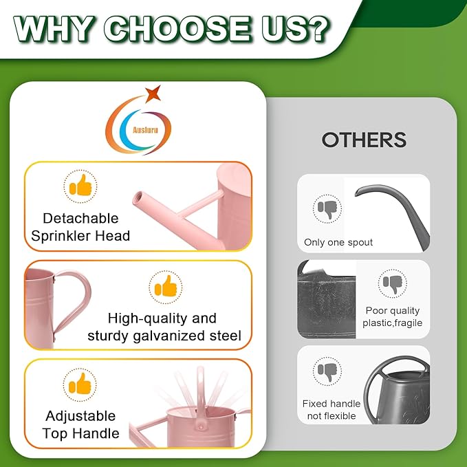 - Versatile Use: From watering indoor and outdoor plants to enhancing the decor of your home or garden, this watering can is a must-have tool for gardening enthusiasts.