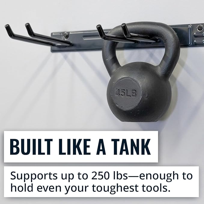 - QUICK & SECURE INSTALLATION – Each garage hook rack includes upgraded hardware with superior tensile strength and a protective electrophoresis coating. Oval mounting holes allow flexibility in stud spacing, and the all-in-one design means no assembly—just mount and get organizing. Ideal for garage organization or home improvement projects.