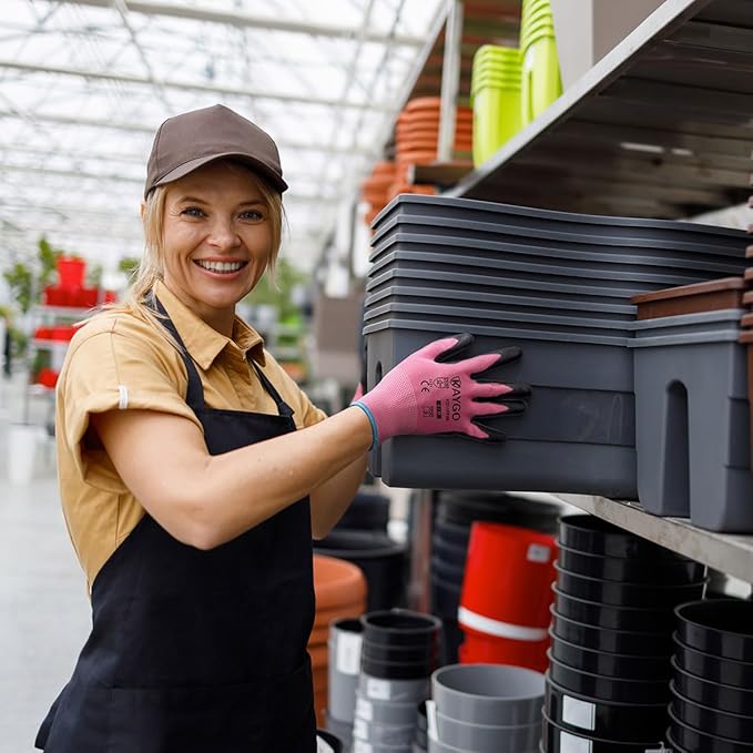 KAYGO Safety Work Gloves PU Coated-60 Pairs Seamless Knit Glove with Polyurethane Coated Smooth Grip on Palm & Fingers, for Men and Women, Ideal for General Duty Work, KG11PR (M,pink)