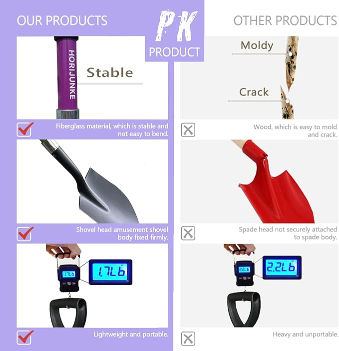 - 【Audult Shovels】: An Enlarged Shovel Head can more Soil or Compost Speed Work, But the Shovel Tip is Smooth without Sharp burr, Don't Worry about Getting Hurt. Snow can be Removed from Under Tires in Winter, Ideal for Excavation Work, Such as Planting, Transplanting, Tilling the Soil, etc.