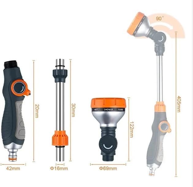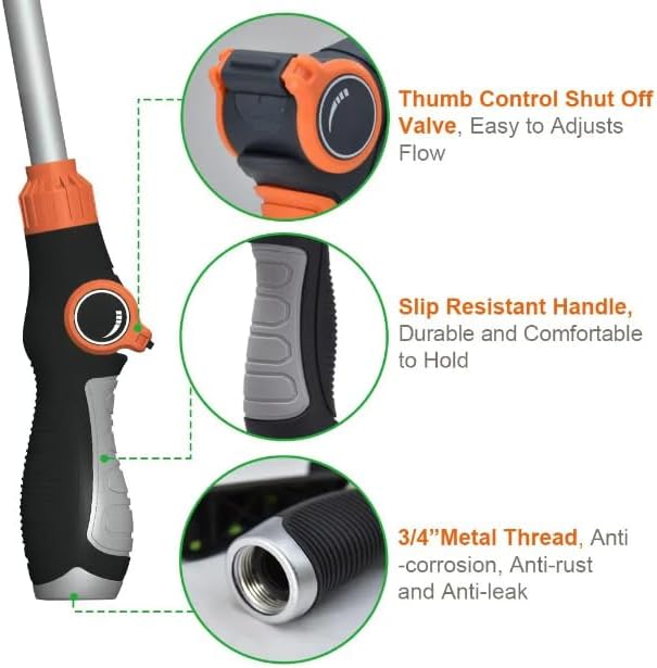 - 8 ADJUSTABLE WATERING MODES: Transform your gardening routine with our garden hose wand, equipped with 8 customizable watering modes. From robust jet streams for tough cleaning to gentle mists for delicate plants, you'll tackle every watering task effortlessly.