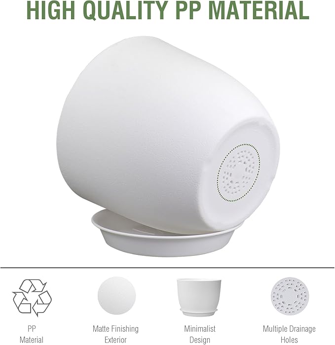 - 【Drainage Holes and Trays】Plant pot features well-designed drainage holes at the bottom to ensure proper water flow. Additionally, saucers catch excess water, keeping your growing area clean and tidy while also ensuring that your plants remain hydrated without becoming waterlogged.