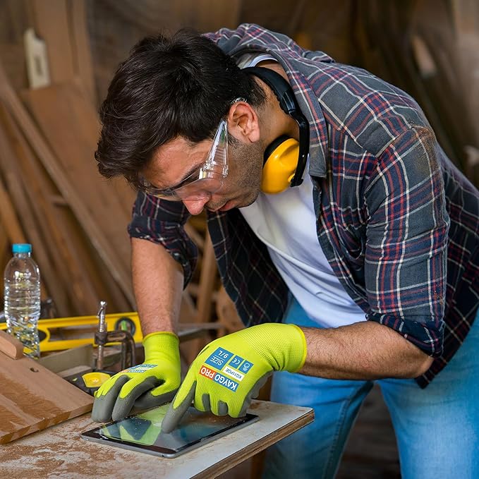 KAYGO Safety Work Gloves PU Coated for Men and Women- KG11P,12 Pairs,Seamless Knit Glove with Two Fingers Touchscreen,Ideal for General Duty Work (Green,M)