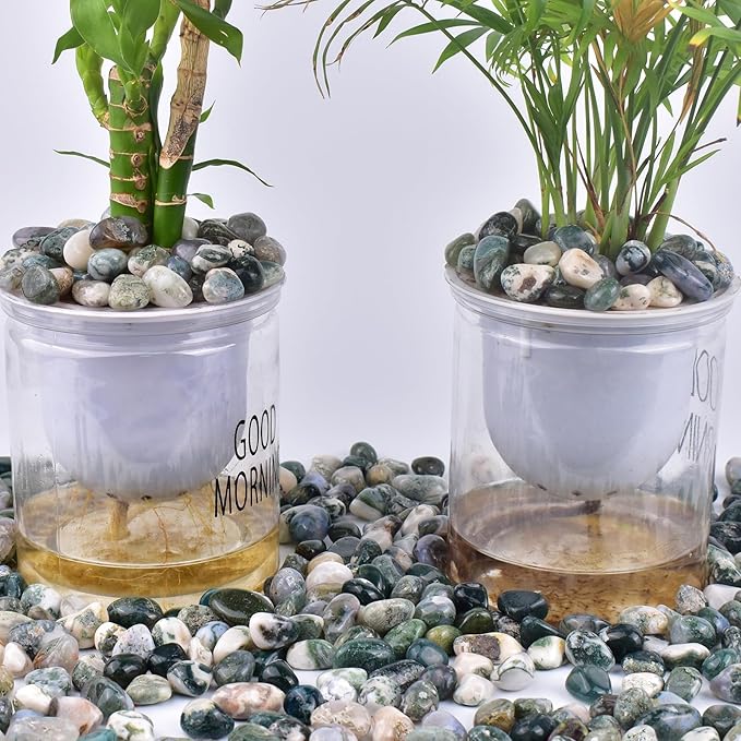 Polished Moss Agate Crystals - 72 Pcs, 0.5" 10 oz Handpicked Natural Tumbled Gemstones Rocks, Pebbles for Reiki, Chakra, Healing Home Decor