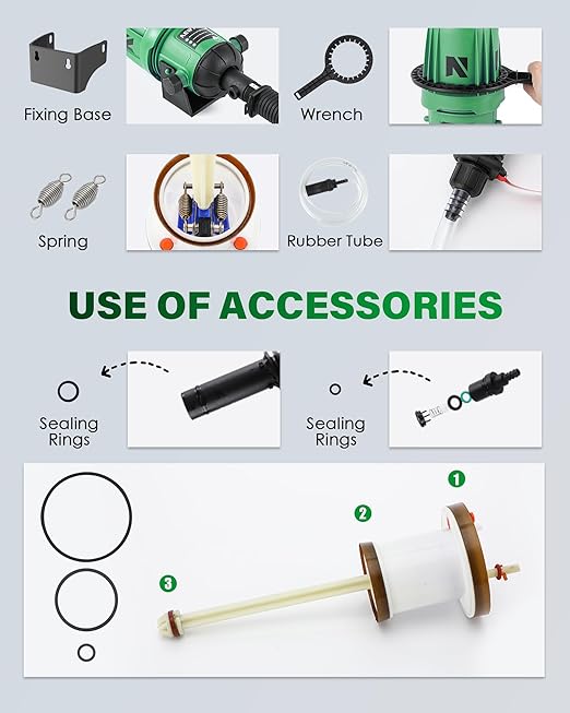 - [Consistent Quality in Diverse Conditions]----Say goodbye to uneven growth and nutrient distribution. This dosing pump utilizes reciprocating dynamic sealing technology, ensuring a stable chemical mixture even as water pressure and flow fluctuate, for uniform plant nutrition. The water flow rate will be reduced when going through the fertilizer injector.