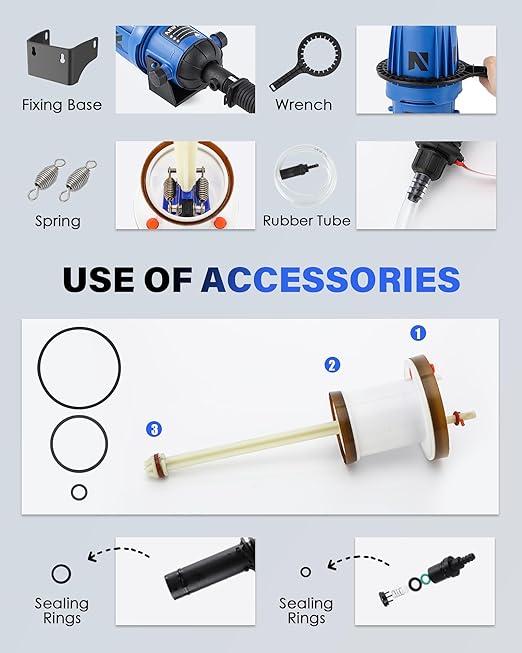 - [Consistent Quality in Diverse Conditions]----Say goodbye to uneven growth and nutrient distribution. This dosing pump utilizes reciprocating dynamic sealing technology, ensuring a stable chemical mixture even as water pressure and flow fluctuate, for uniform plant nutrition. The water flow rate will be reduced when going through the fertilizer injector.