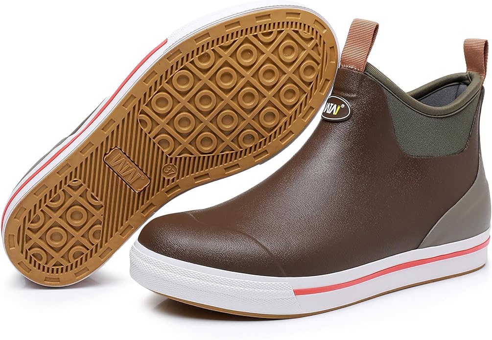 - 【Multiple Use】Unisex ankle deck boots are crafted for fishing, sailing, camping, farming, doing sports, dog-walking outside etc. WTW rain boots are ready for you.