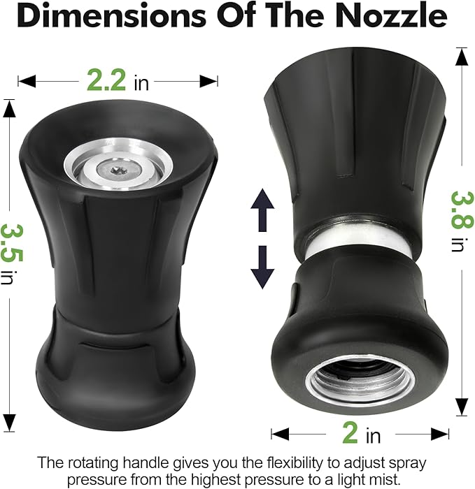 - Highly Efficient Water Flow:With the nozzle, there is more water flow than other hoses at the same time, which can save your time to improve efficiency.The nozzle is made of high quality zinc alloy and rubber can be connected to any standard US 3/4” garden hose