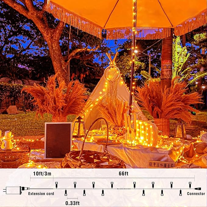 66FT 200 LED Outdoor String Lights, Orange Halloween Lights Waterproof 8 Modes Timer, Connectable Clear Wire Fairy Twinkle Light for Indoor House Bedroom Tree Yard Party Holiday Decorations