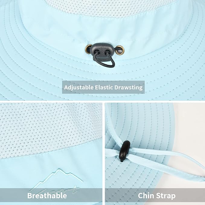- 【Sun Protection&Anti-Sweat】Anti-UV and UPF 50+ excellent sun protection keep yourself protected from the damaging rays. Wide Brim keeps your face and neck from the strong sun.360 degree sweatband inside the hat and breathable lining absorb sweat efficiently.