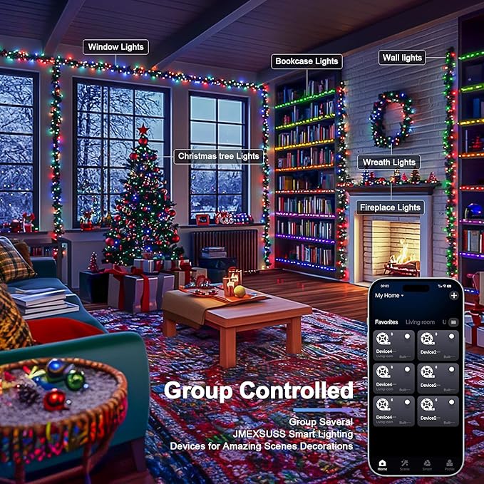 - 16 Million Colors Christmas Lights: JMEXSUSS smart Christmas lights offer a more extensive range of colors compared to other string lights. This includes standard single colors, unique bi-color combinations, and traditional tri-color and multi-color options, making them ideal for any festival lighting decor throughout the year. Multicolor, white, red & white, red & green, etc for Xmas; red white blue for July 4th; orange & purple for Halloween/ Thanksgiving, red/pink/green for Christmas.