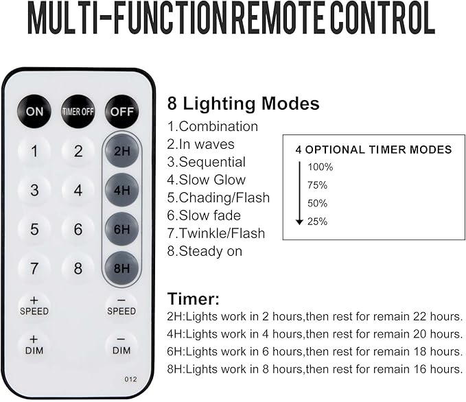 - 2 Ways to Control Fairy Lights: Using the buttons on the remote control or mode controller, you can choose from 8 different lighting effects to add a touch of sparkle and vibrancy to your holiday party
