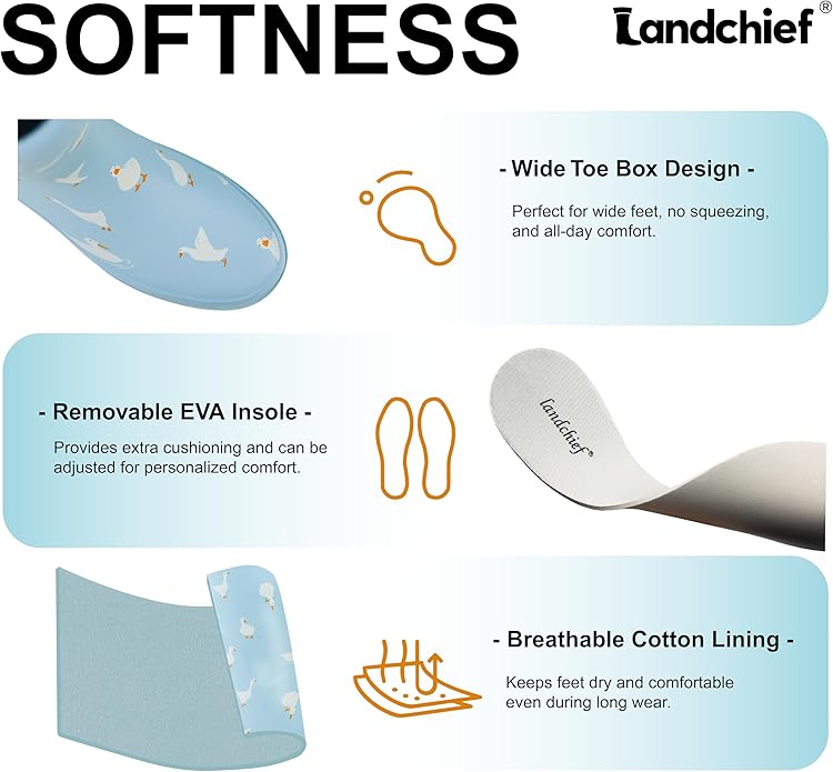 - LANDCHIEF COMFORT || Landchief fashion rain boots that combines both functionality and comfort. It’s a pair of rain boots you feel good to wear. Your feet will keep dry, cozy, and warm when wearing it!