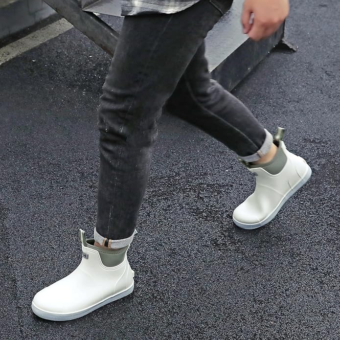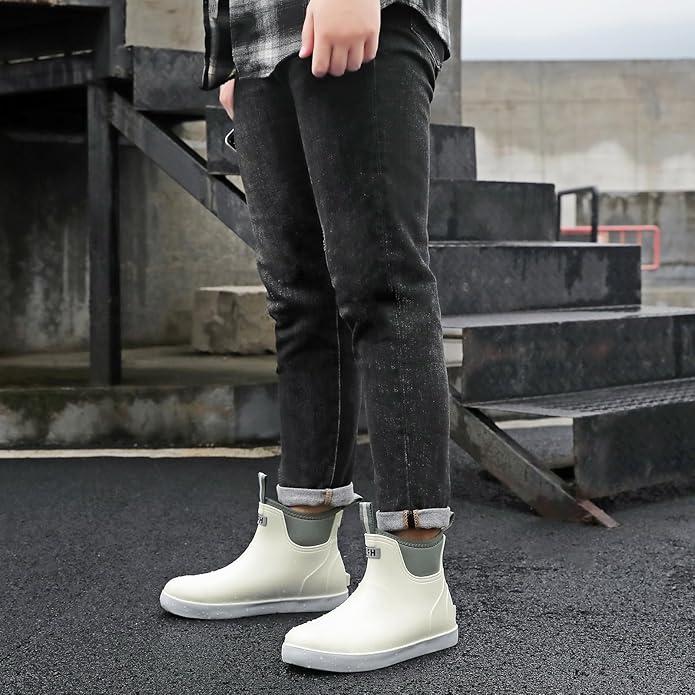 Mens Deck Boots, Saltwater Fishing Booties Rubber Waterproof Ankle Rain Boots, High-performance Footwear Chelsea Boots for Gardening Fishing Boating Camping Sailing