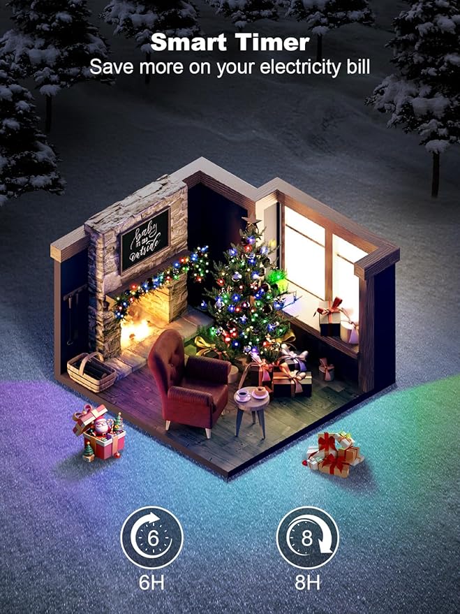 - 【Easy to Operate】Equipped with a remote control, allowing you to control the Christmas tree lights within a 10-meter radius at any time, which is more convenient than traditional string lights with buttons. It comes with 8 built-in lighting modes: combination, waves, sequence, Slo-Glo, chase, slow fade, flash, and steady light, to meet your needs on different occasions. Its brightness can also be adjusted in four levels, from 25% to 100%, letting you enjoy beautiful dynamic lights while saving energy.