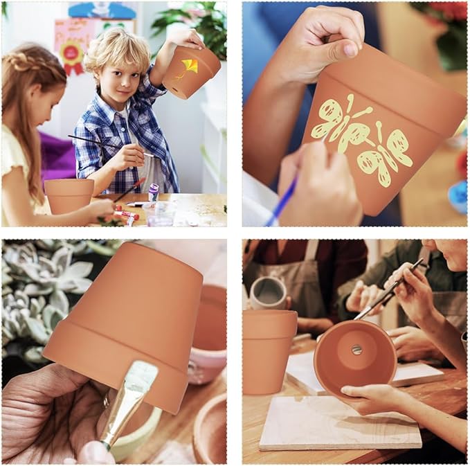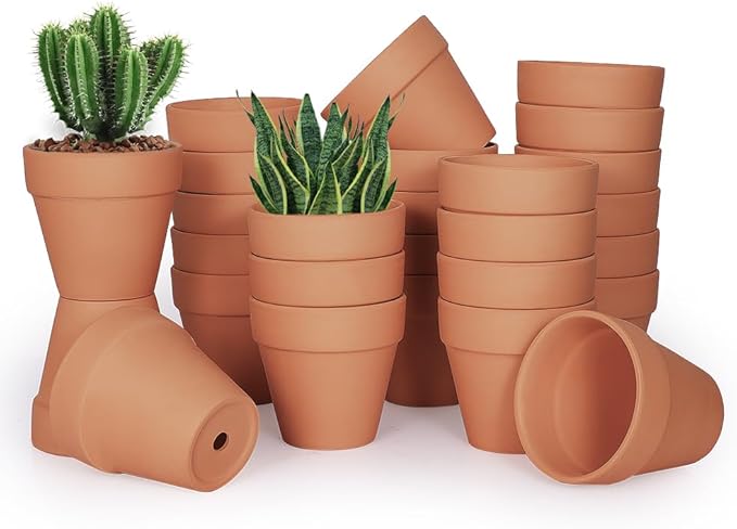 4 inch Terracotta Clay Pots, 24 Pack Clay Flower Pots with Drainage, Great for Plants, DIY, Crafts, Wedding