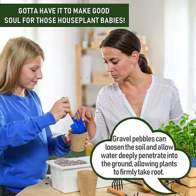 - Say Goodbye to Slow Plant Growth - You can try using gravel pebbles to make your plant humidity trays, and they help keep perfect soil moisture, also add to the seedling soil mixture. When seeds are ready to sow, the gravel pebbles help spread evenly, especially with nearly microscopic seeds. It adds airflow in the dirt so the plants grow better. The gravel pebbles are clean and lovely colors and complement the greenery of your plants.