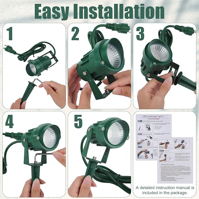- Easy to Use: designed with a US standard 3-prong plug for straightforward usage and a 1.5 m power cord that offers a greater installation range without requiring additional extension cords; our waterproof landscape lighting is suitable for any location with a power outlet, making setup flexible and convenient