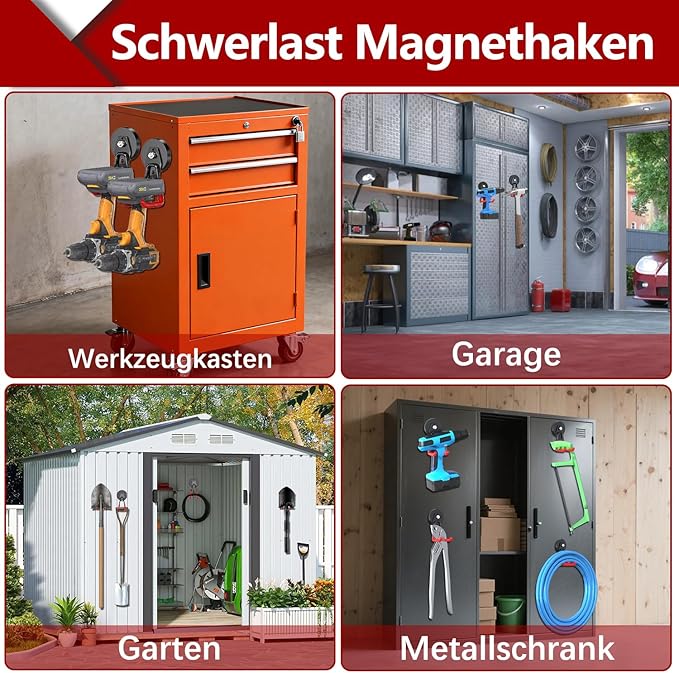 - Space Saving Heavy Duty Magnetic Hook: Our strong magnetic hooks offer an ideal solution for efficiently utilizing vertical garage storage space. The heavy duty magnetic hook is portable,versatile for use in garages, kitchens, offices, warehouses, gardens, and basements. These magnet hooks heavy duty help to reduce clutter and maximize available space to hang hoses, ropes, shovels, wires, cables, rakes and more