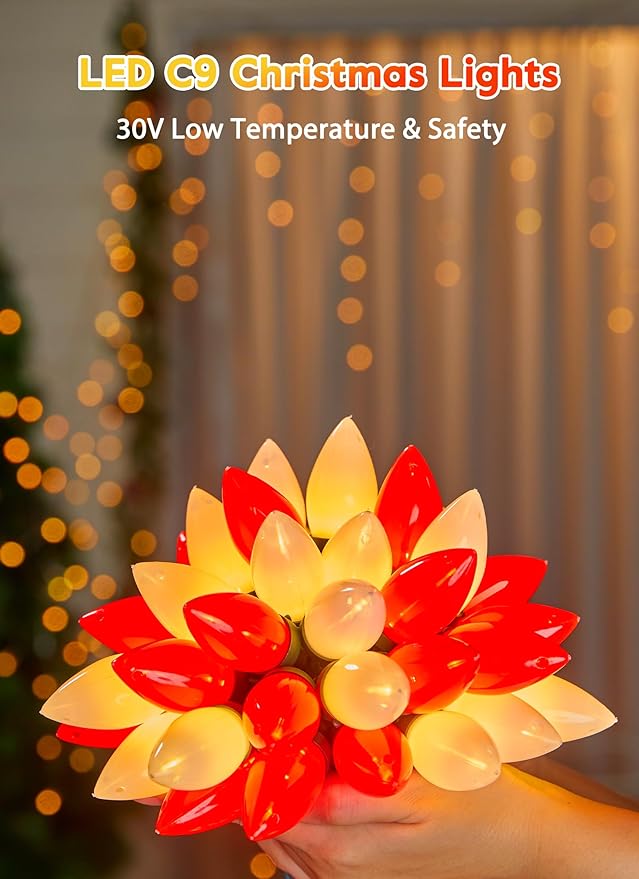 - Vintage C9 Christmas Lights Outdoor: Illuminate your holidays with our UL listed C9 LED lights. Spanning 81.7 feet with 102 shatterproof bulbs (2 spare), these red and warm white lights bring a magical glow to any setting, perfect for reliving childhood memories or surprising loved ones