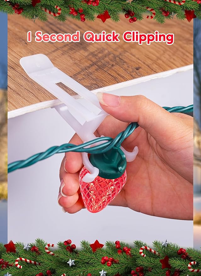- Convenient Stable Setup and Removable All in ONe Clips: These energy efficient C9 LED Christmas lights come with 100 count white all in one clips for quick installation, offering the option of fastening easily and safely in a wider variety of settings, such as gutters, shingles, roofs, house, window or trees. The C9 light clips can also be easily removed if needed