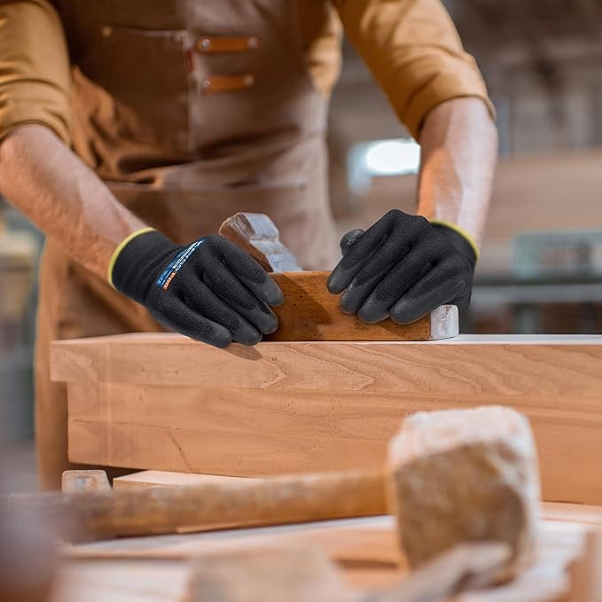 - Superior Grip and Durability: The polyurethane (PU) coating on the palms and fingertips provides excellent grip and abrasion resistance, making these gloves ideal for handling both dry and slightly oily materials.