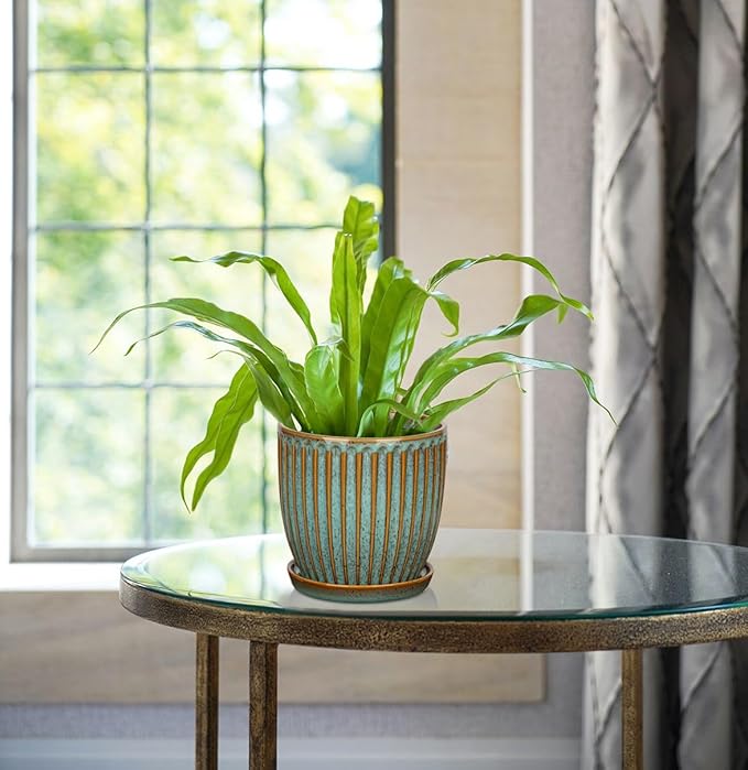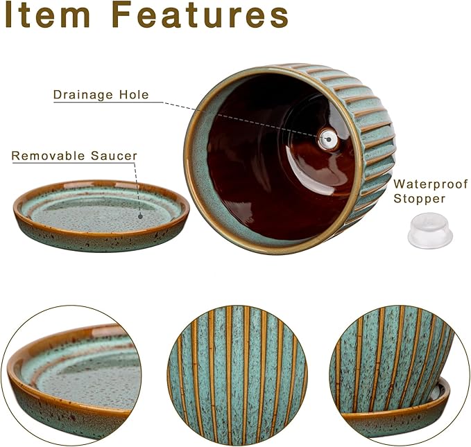 - Ceramic Planter Pot -The surface of the indoor planters are carved with line stripes, using superb glazing process and firing at high temperature, each ceramic flowerpot has irregular black spots effect on its surface, which make it exquisite and special, making the houseplant pots simply stunning, and thingking it will let your plants or flowers shine. Its elegant glazed colors and minimalist design can fit for any home décor style