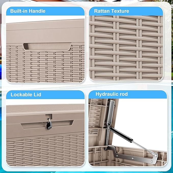 - SAFETY & LOCKABLE FEATURE - Equipped with a hydraulic lid support for smooth and safe opening and closing, preventing accidental pinching. The integrated lockable mechanism adds an extra layer of security for your outdoor valuables.