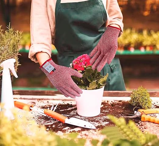 Cutting Gloves, 2 Pairs of Cut Resistant Gloves Food Grade, Cut Resistant Gloves for Kitchen, Oyster Shucking, Fish Fillet Processing, Carving Wood and Gardening(Small-Red)