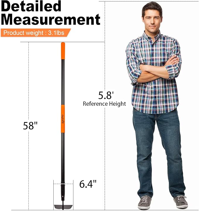 - Right Size Design: At 58 inches in overall length, the heavy duty weeding hoe is sized to reduce back strain from frequent bending, and the wider blade of the hoe covers a wider area for more efficient gardening.