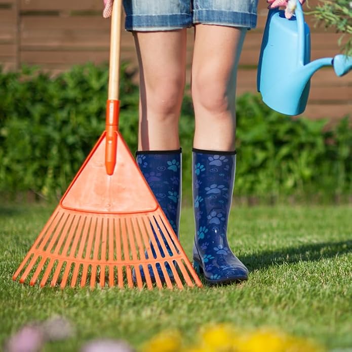 - These women’s rain boots feature a soft and flexible PVC materials upper and round-toe silhouette. The soft and quick-dry textile lining absorbs moisture, so you will stay dry, cozy, and warm in the backyard garden.