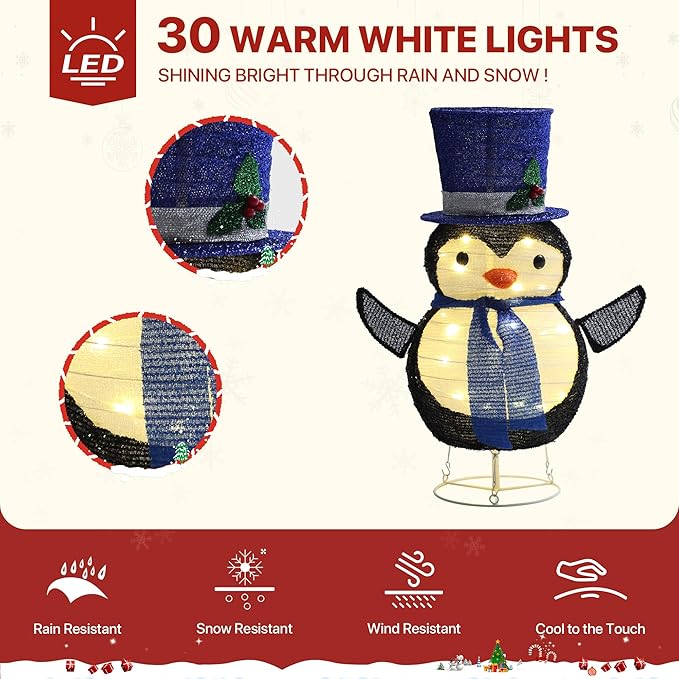 - 【Dedicated Customer Support】We have been committed to ensuring your satisfaction with our Christmas penguin decor. If you have any issues, including missing parts or product defects, our customer service team is ready to help. We strive to resolve any concerns promptly, making your shopping experience as joyful as our penguin Christmas decorations.