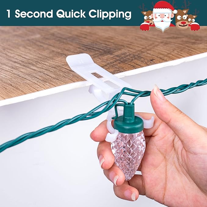 - Convenient Stable Setup and Removable All in ONe Clips: These energy efficient C9 LED Christmas lights come with 100 count white all in one clips for quick installation, offering the option of fastening easily and safely in a wider variety of settings, such as gutters, shingles, roofs, house, window or trees. The C9 light clips can also be easily removed if needed